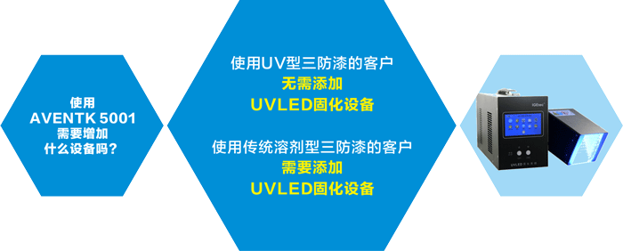 AVENTK 5001系列UV三防漆涂覆于線(xiàn)路板及其相關(guān)分立器件、集成電路的表面,固化后會(huì )形成一層透明保護膜,可有效地隔離線(xiàn)路板,保護電路免受惡劣環(huán)境的侵蝕、破壞,從而提高并延長(cháng)它們的使用壽命,確保使用的安全性和可靠性。