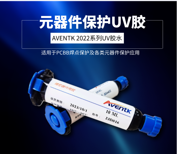 AVENTK 2022系列元器件保護UV膠對PCB具有高附著(zhù)力,膠水可耐高低溫沖擊,適用于PCB焊點(diǎn)保護及各類(lèi)元器件保護。