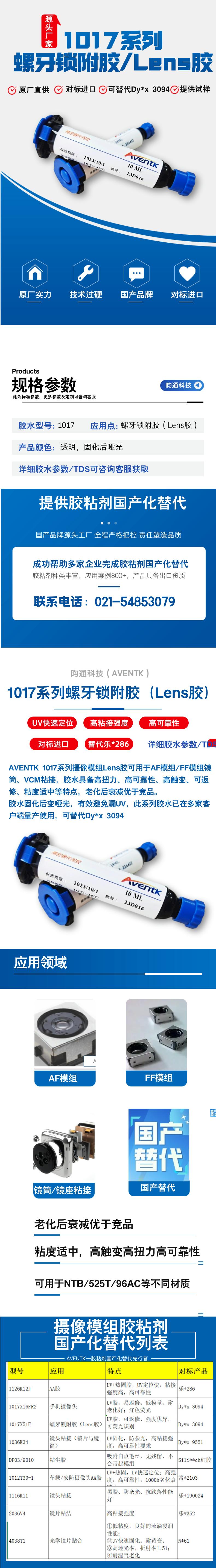 AVENTK 1017系列攝像模組Lens膠可用于A(yíng)F模組/FF模組鏡筒、VCM粘接,膠水具備高扭力、高可靠性、高觸變、可返修、粘度適中等特點(diǎn),老化后衰減優(yōu)于競品,膠水固化后變啞光,有效避免漏UV,此系列膠水已在多家客戶(hù)端量產(chǎn)使用