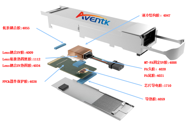 訊石認為,雙邊關(guān)稅和貿易戰的影響下,光通信各類(lèi)關(guān)鍵物料將存在斷供的可能性,盡管光模塊和半導體產(chǎn)品進(jìn)入了豁免范圍,例如高速激光器、探測器、DSP、Driver、TIA等芯片產(chǎn)品,但光模塊、光器件、連接器廠(chǎng)商其他關(guān)鍵物料方面仍然迫切地需要安全可靠的替代選擇,尤其是應用于光器件粘接的膠水材料——粘接劑,這類(lèi)產(chǎn)品在光器件BOM中不起眼卻又深刻影響整體可靠性的細小物料,也是光通信產(chǎn)業(yè)鏈急需突破的瓶頸之一。幸運的是,一批國產(chǎn)光通信粘膠劑廠(chǎng)商經(jīng)過(guò)十多年研發(fā)投入,成功實(shí)現了光器件應用多種粘接劑的國產(chǎn)化,其中上海昀通電子科技有限公司(簡(jiǎn)稱(chēng)昀通科技,AVENTK)就是佼佼者。昀通科技(AVENTK)在UV固化設備、UV固化膠水領(lǐng)域擁有十余年的研發(fā)生產(chǎn)經(jīng)驗,包括環(huán)氧脂、丙烯酸、硅脂等膠水材料等適用于光通訊的膠粘劑產(chǎn)品。在與訊石光通訊網(wǎng)的訪(fǎng)談中,公司表示自上一輪貿易戰發(fā)生以后,昀通科技便開(kāi)始配合多家光通信大廠(chǎng)做國產(chǎn)化粘接劑替換。經(jīng)過(guò)幾年發(fā)展,公司已經(jīng)建立起高可靠性的光通訊用膠技術(shù)平臺,推出了一系列高可靠性、可國產(chǎn)化替代的光通訊膠水產(chǎn)品。光通訊產(chǎn)品線(xiàn)目前覆蓋了有源光器件用膠、光模塊用膠及無(wú)源光器件用膠等多個(gè)領(lǐng)域。