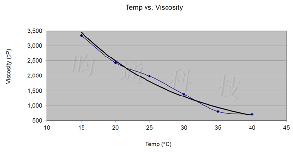 從上式可以看出,粘度η與溫度1/T成指數關(guān)系,即T越大,η成指數下降。