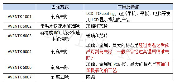 UV可剝離膠按照去除的方式可以分為水溶去除型和剝離去除型。水溶去除型UV可剝離膠可在常溫或一定溫度如60~83℃的水溶液(pH=7,濃度為20%,對人體無(wú)任何傷害)中去除。剝離去除型UV可剝離膠主要用于噴砂、噴丸成形、酸洗、電鍍和陽(yáng)極處理等工序,用簡(jiǎn)易方法(膠帶、鑷子、手)剝離且不殘留或污染材料表面。